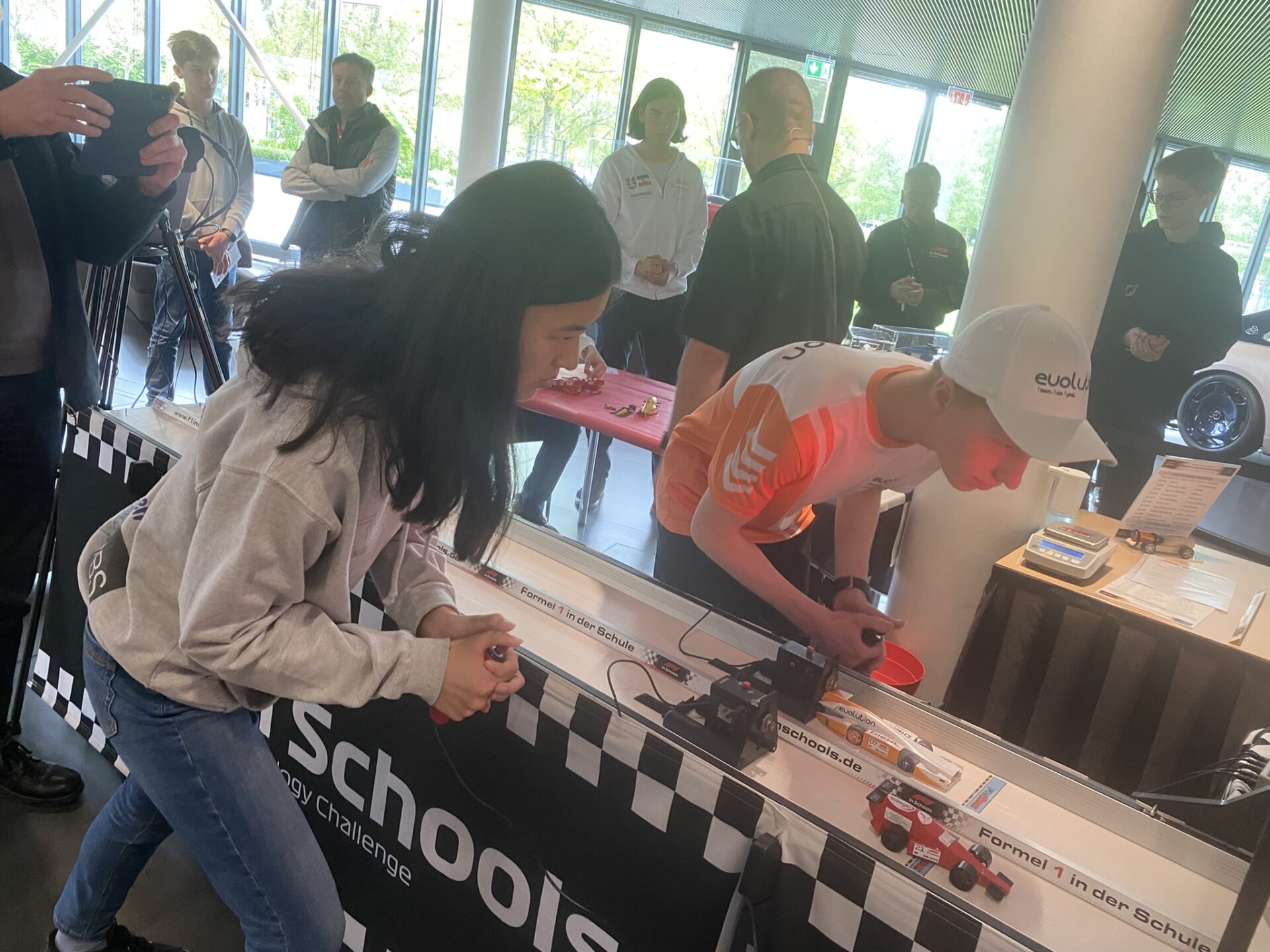 Vier Jugendliche aus verschiedenen Schulen im Hamburger Raum sind das Team NB racer und arbeiten seit Beginn des Schuljahres im Rahmen des nordbord-Kurses „Bau dir einen Flitzer für den NORDMETALL CUP F1 in der Schule“ in den Räumen des Schülerforschungszentrums Hamburg an ihrem Rennwagen, um an dem großen Wettbewerb teilzunehmen. Nachdem das Team NB racer rund um Eva und David Shi, Pascal Müller und Rasmus Berkau beim NORDMETALL-Cup in Hamburg den ersten Platz belegt sowie alle Sonderpreise bekommen haben, sind sie nun gemeinsam mit ihrem Tutor Lars Bohnsack und den Begleitpersonen Georg Kubina (Schülerforschungszentrum Hamburg) sowie Katharina Quendler (nordbord) nach Sindelfingen gefahren, um sich am 13. Mai 2023 beim Bundeswettbewerb „Formel 1 in der Schule“ mit der deutschen Junior-Elite zu messen. Die Aufregung vor Ort war deutlich zu spüren, doch das Team hat sowohl das Rennen als auch das Gespräch mit der Jury souverän gemeistert und freut sich über den vierten Platz von sieben Junior-Teams. Wir gratulieren herzlich!